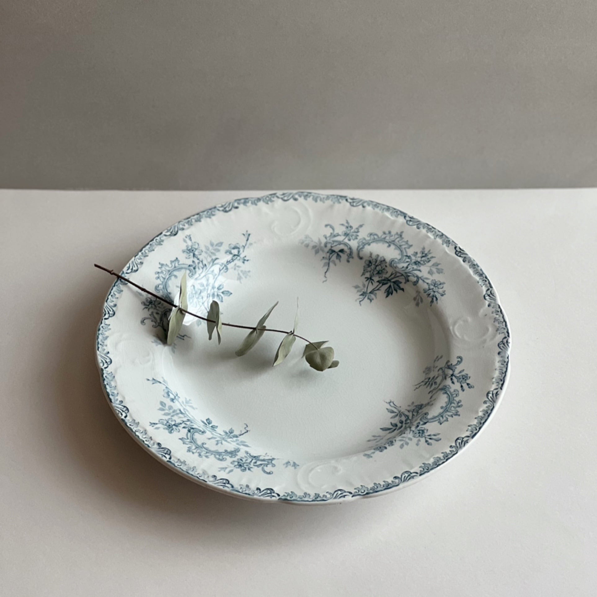 繊細な草花の絵柄とレリーフが美しいサービングプレート。
