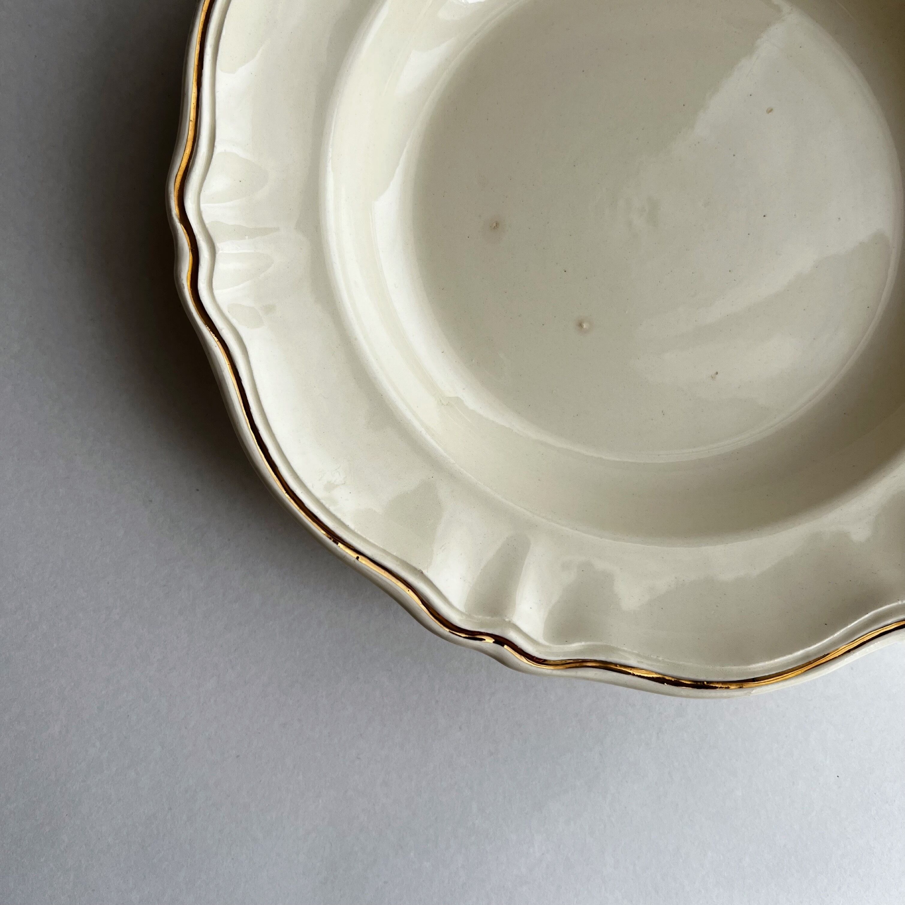 やわらかい乳白色が優しい、シンプルで使いやすい大きめ花リムプレート。