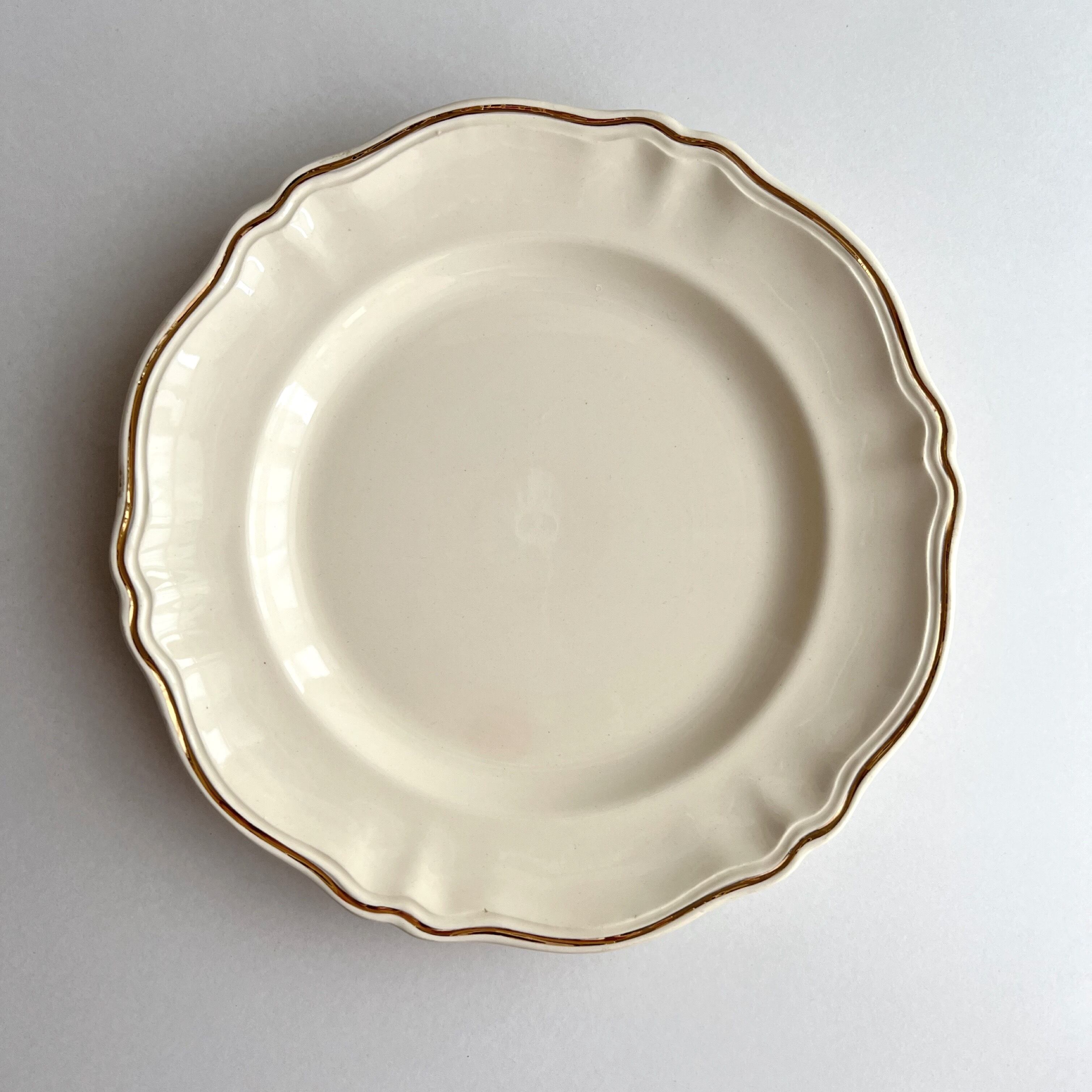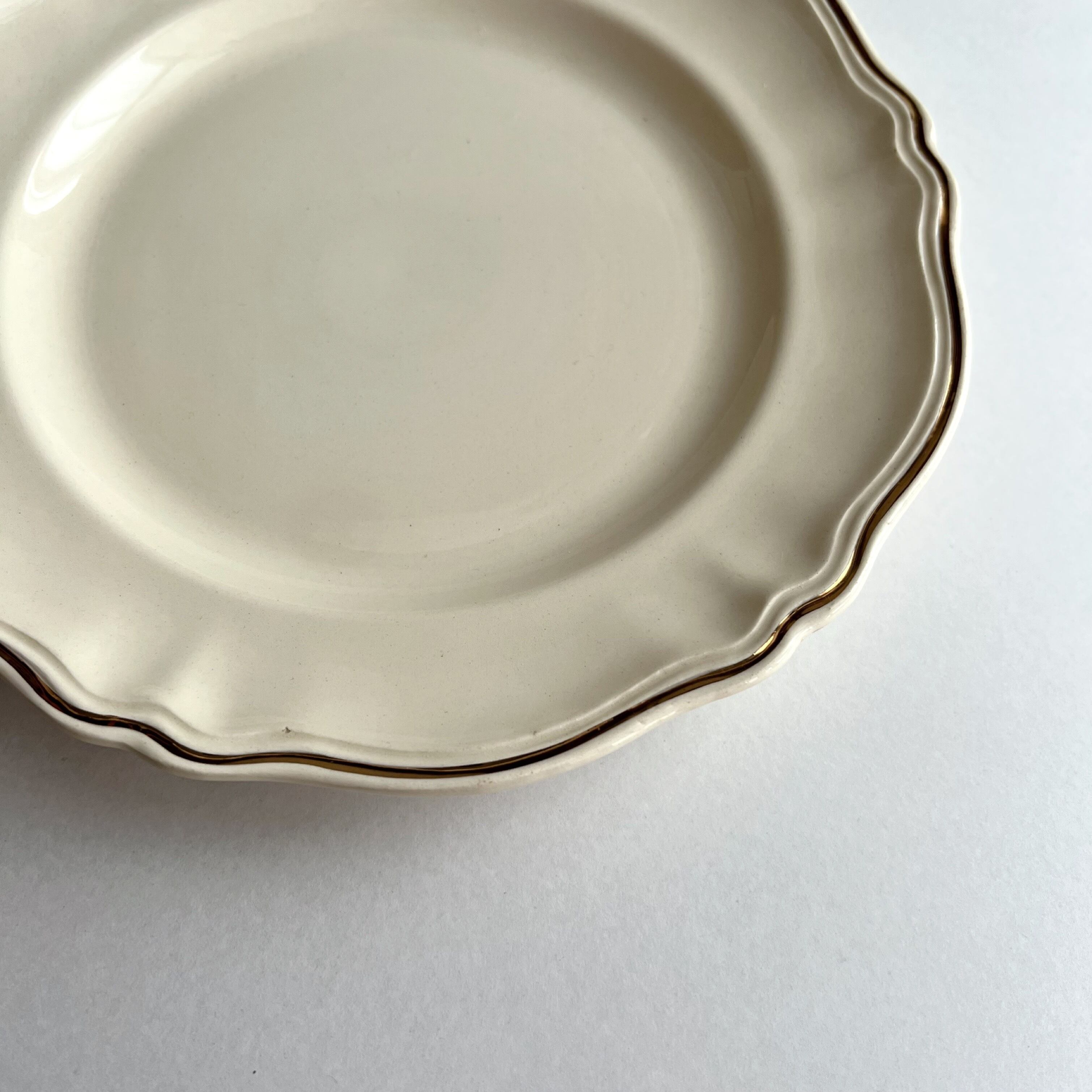 やわらかい乳白色が優しい、シンプルで使いやすい大きめ花リムプレート。