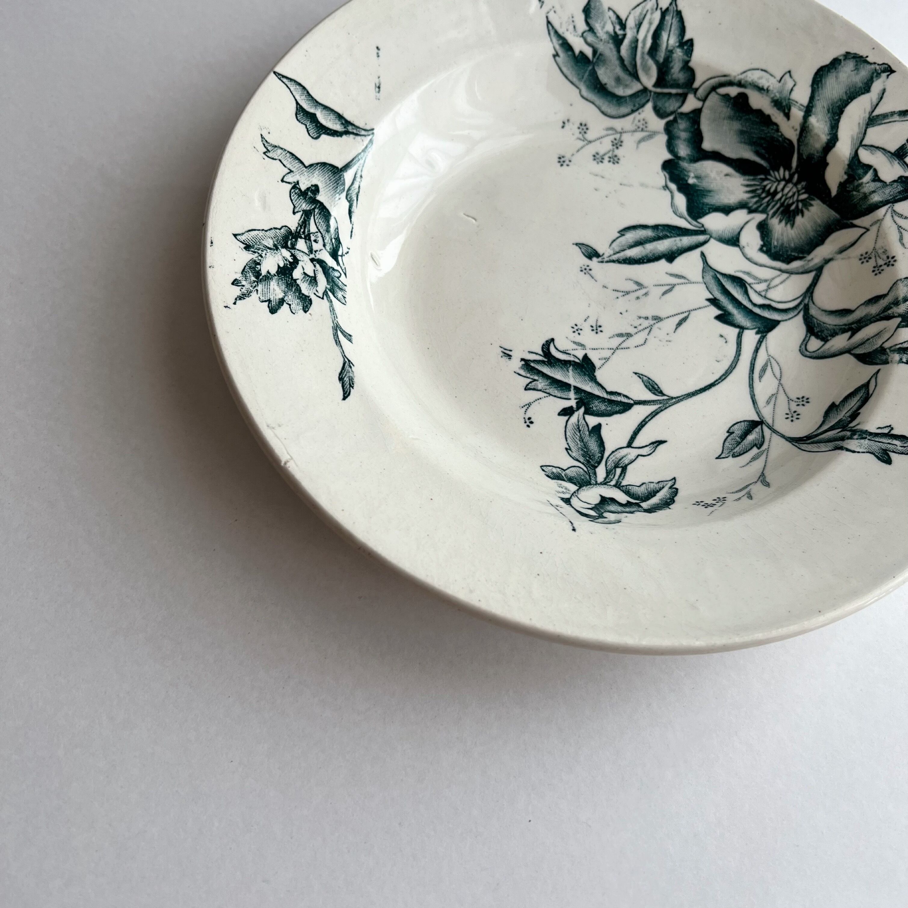 深いブルーグリーンの気品溢れる転写デザインが美しい1枚。