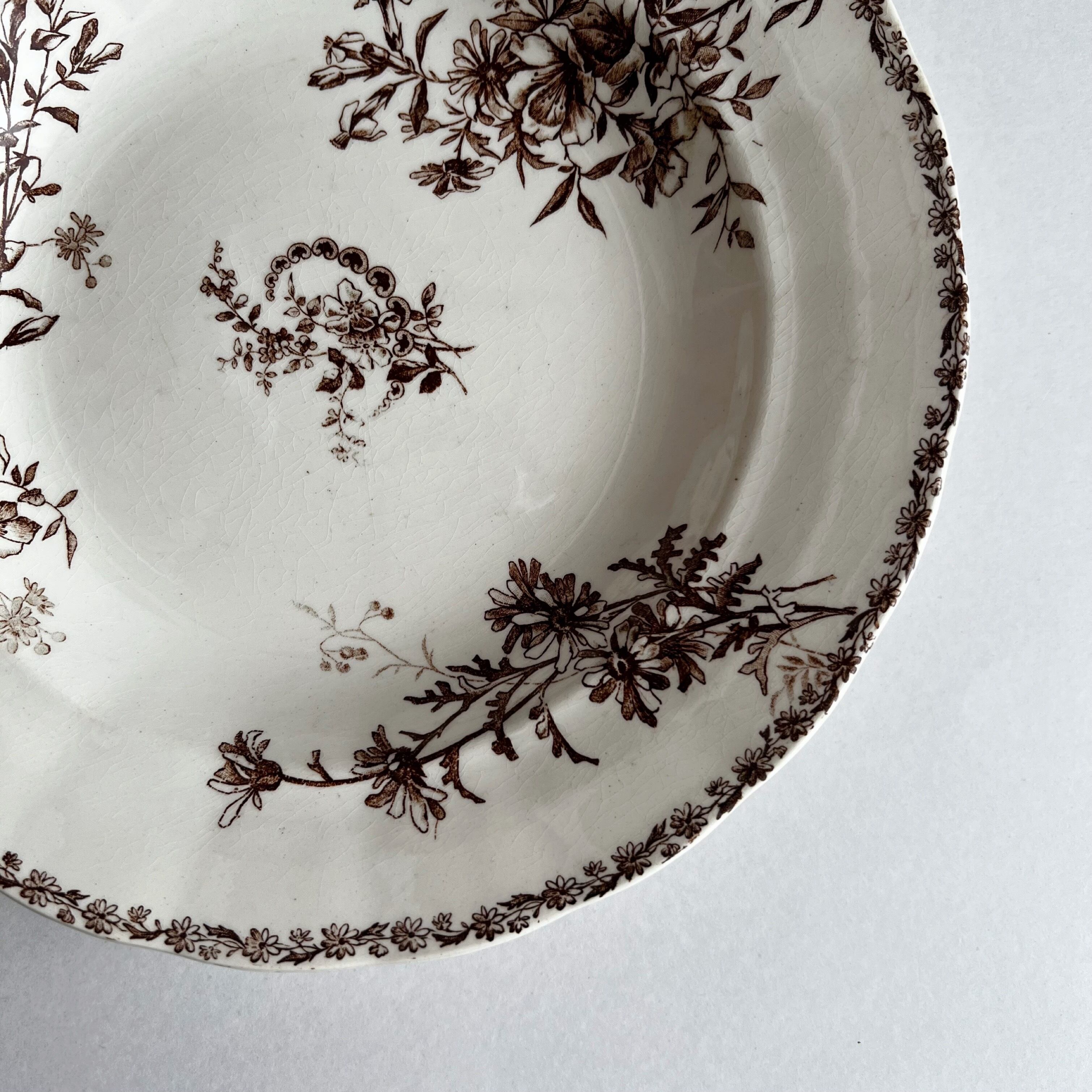 希少なブラウンで草花が描かれた可憐なプレートです。