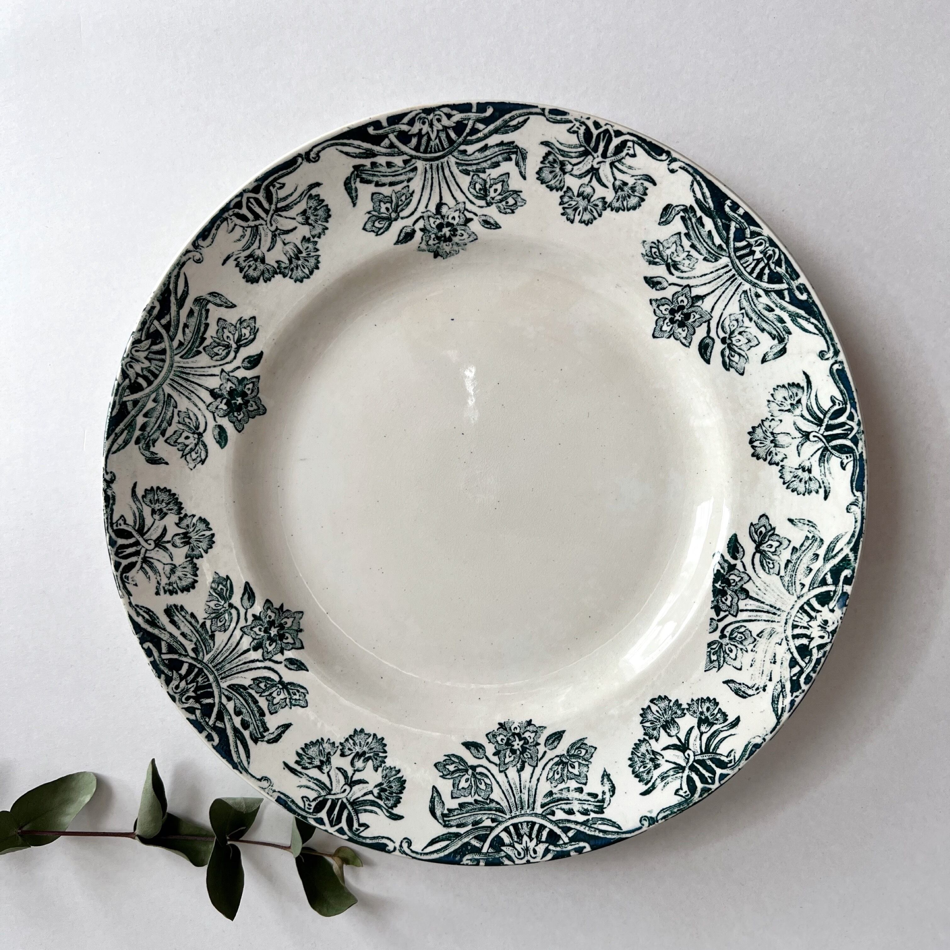 ブルーグリーンの色合いで描かれた花柄が美しいスーププレート。