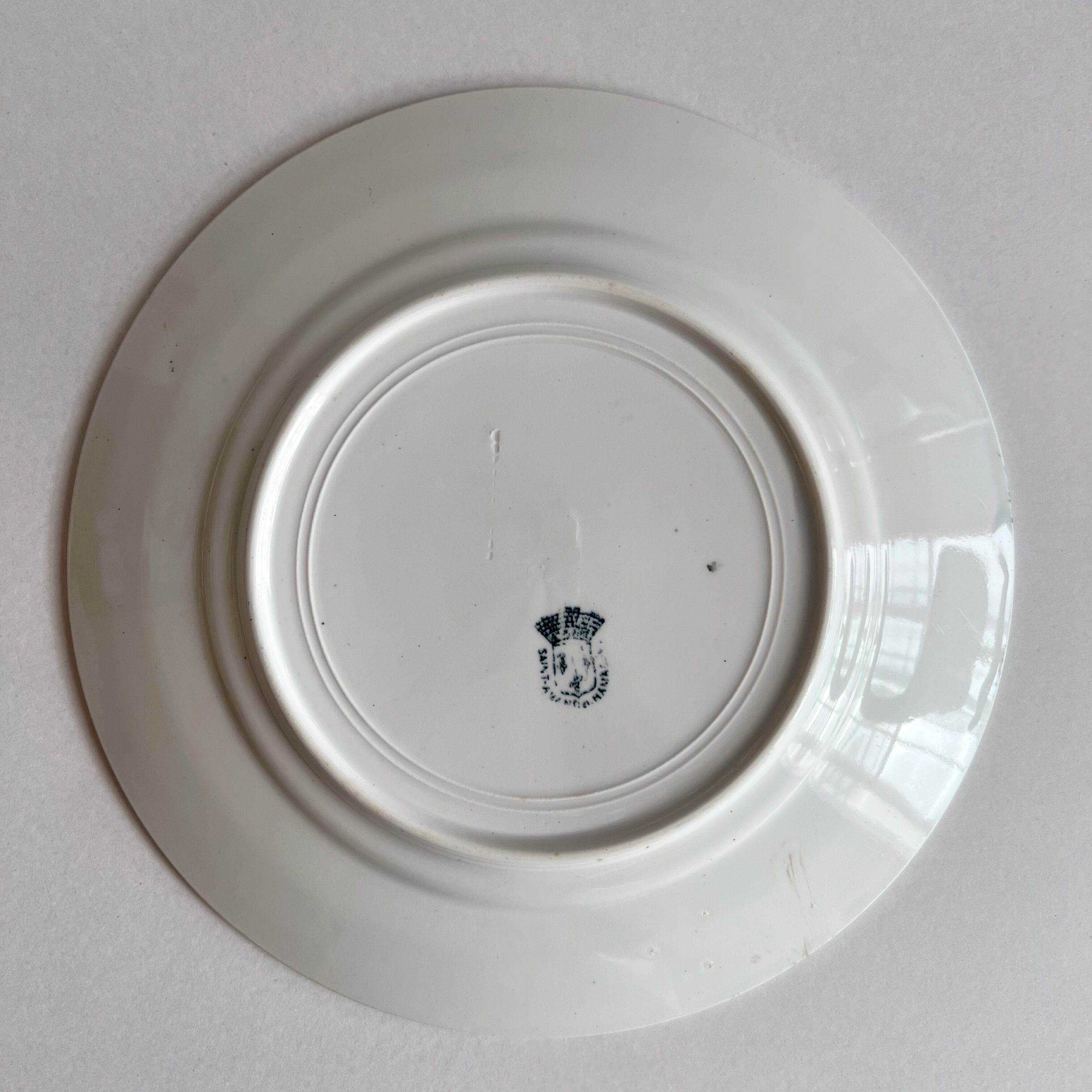 ブルーグリーンの花柄の転写が美しく繊細な1枚。