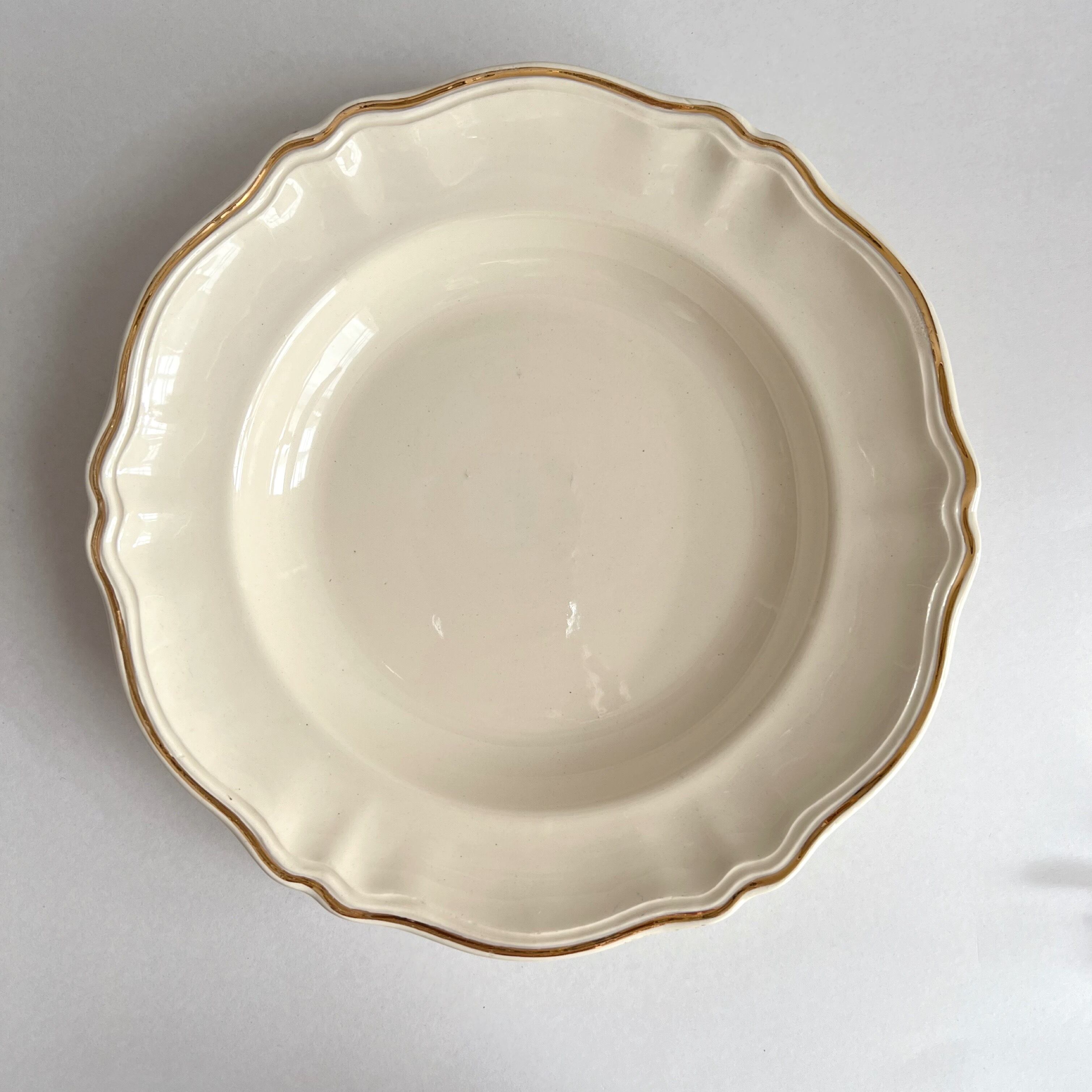やわらかい乳白色が優しい、シンプルで使いやすい大きめ花リムスーププレート。