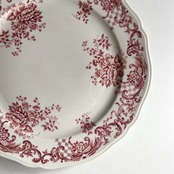 ホワイトカラーに繊細な赤の花柄が美しいディナープレート。