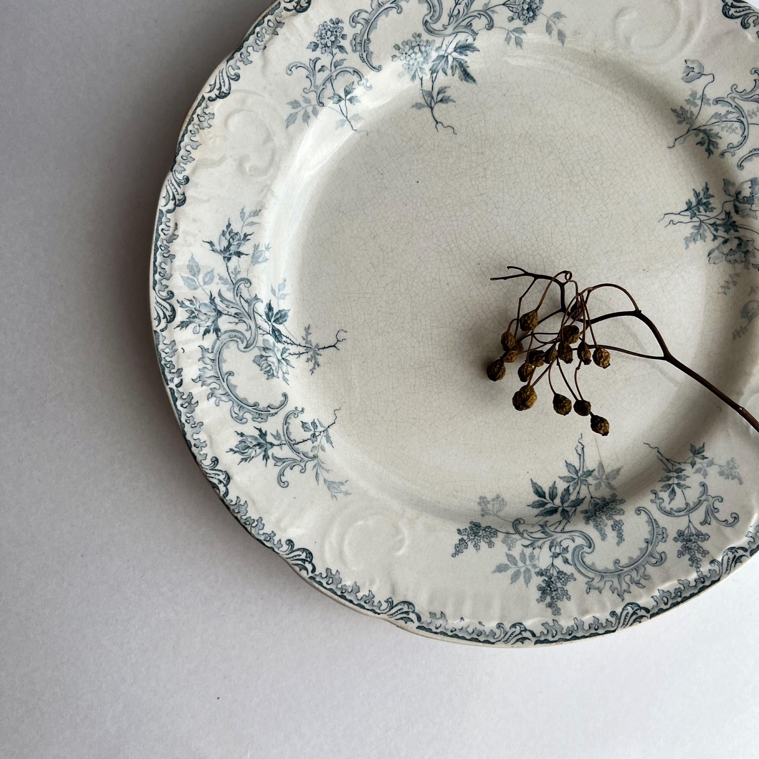 繊細な草花の絵柄とレリーフが美しい大きめプレート。