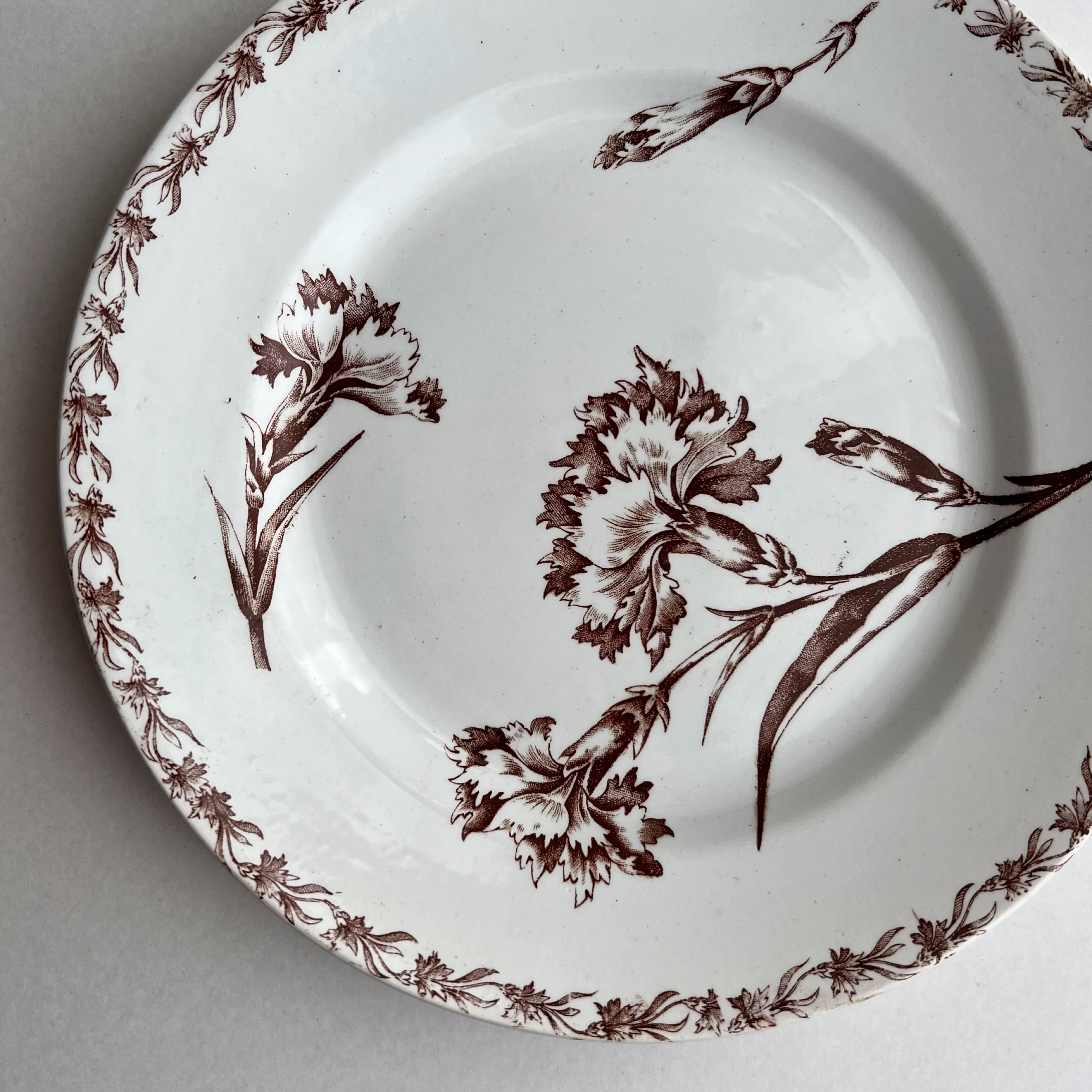 愛らしいカーネーションが描かれた希少なブラウンのデザートプレート。