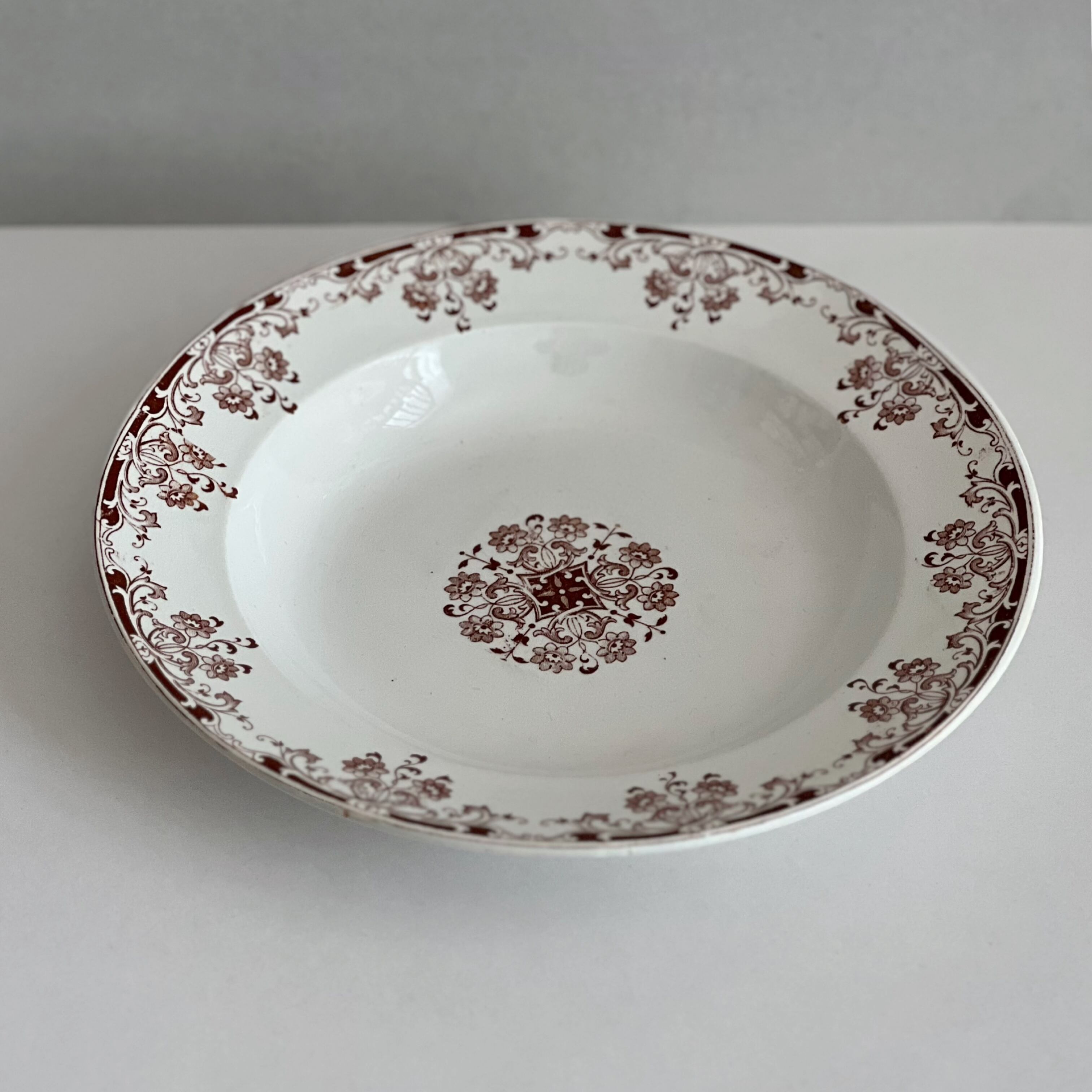希少なブラウンの花柄デザインが可愛いスーププレート。