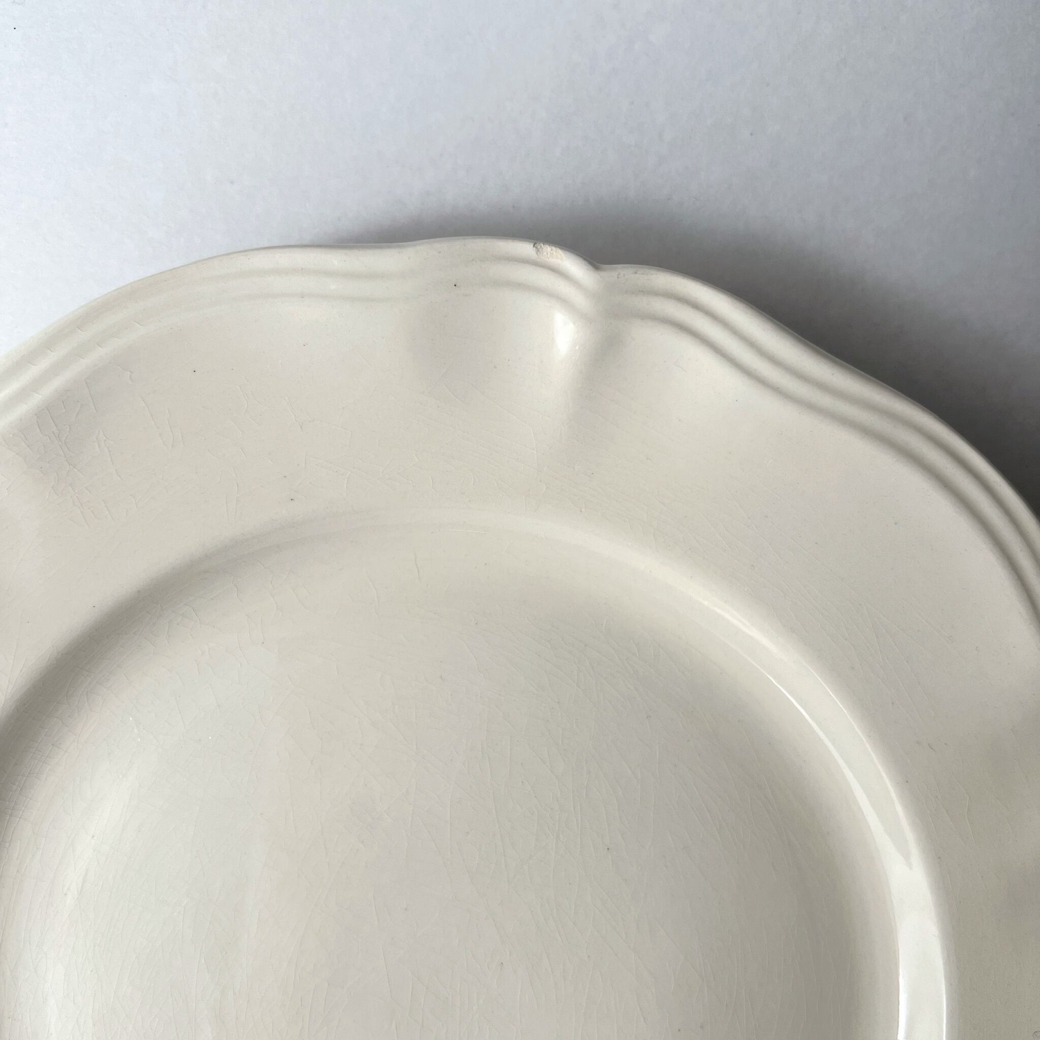 やわらかい乳白色が優しい、シンプルで使いやすい花リムプレート。