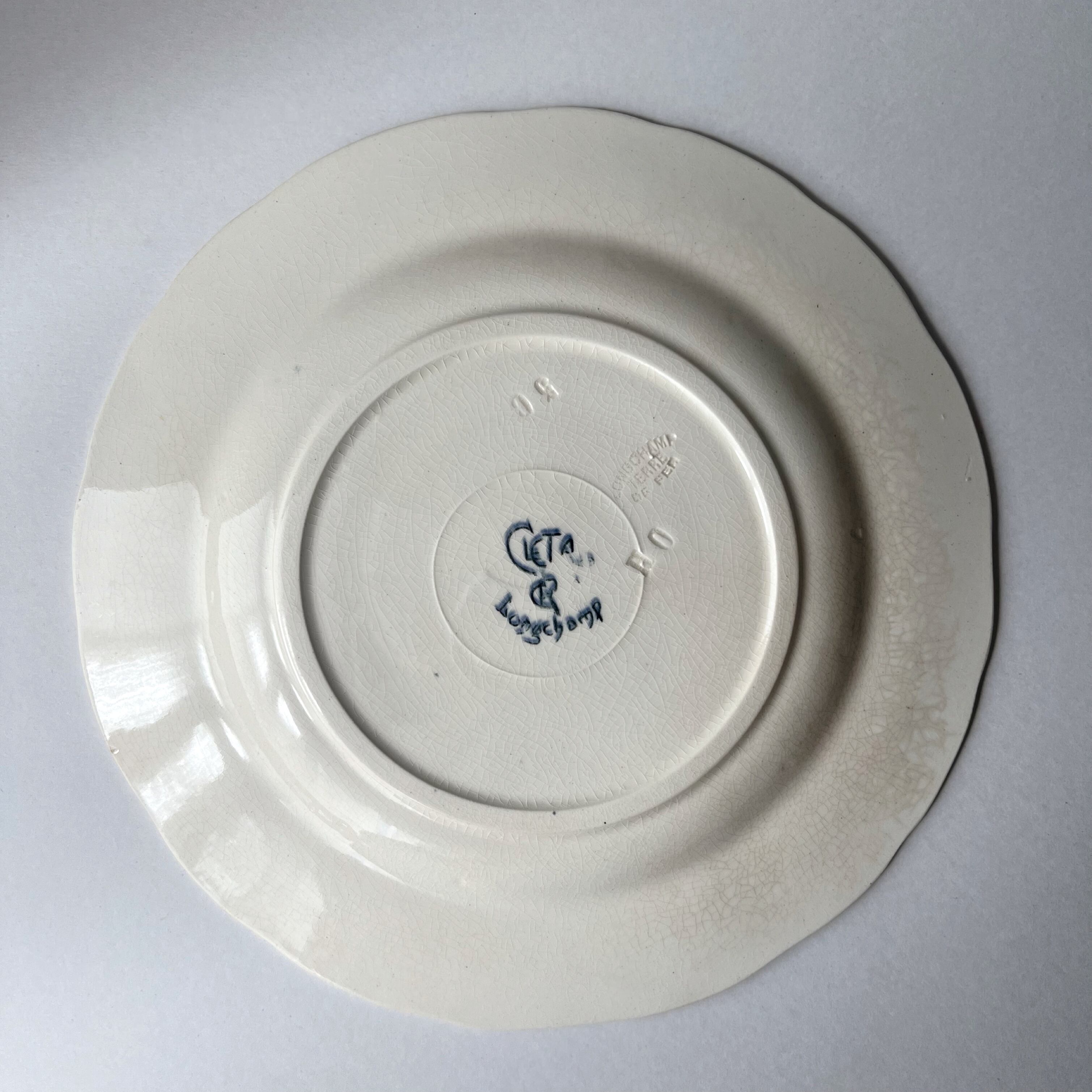 繊細なネイビーブルーの花柄に美しいレリーフが施された希少なプレート。