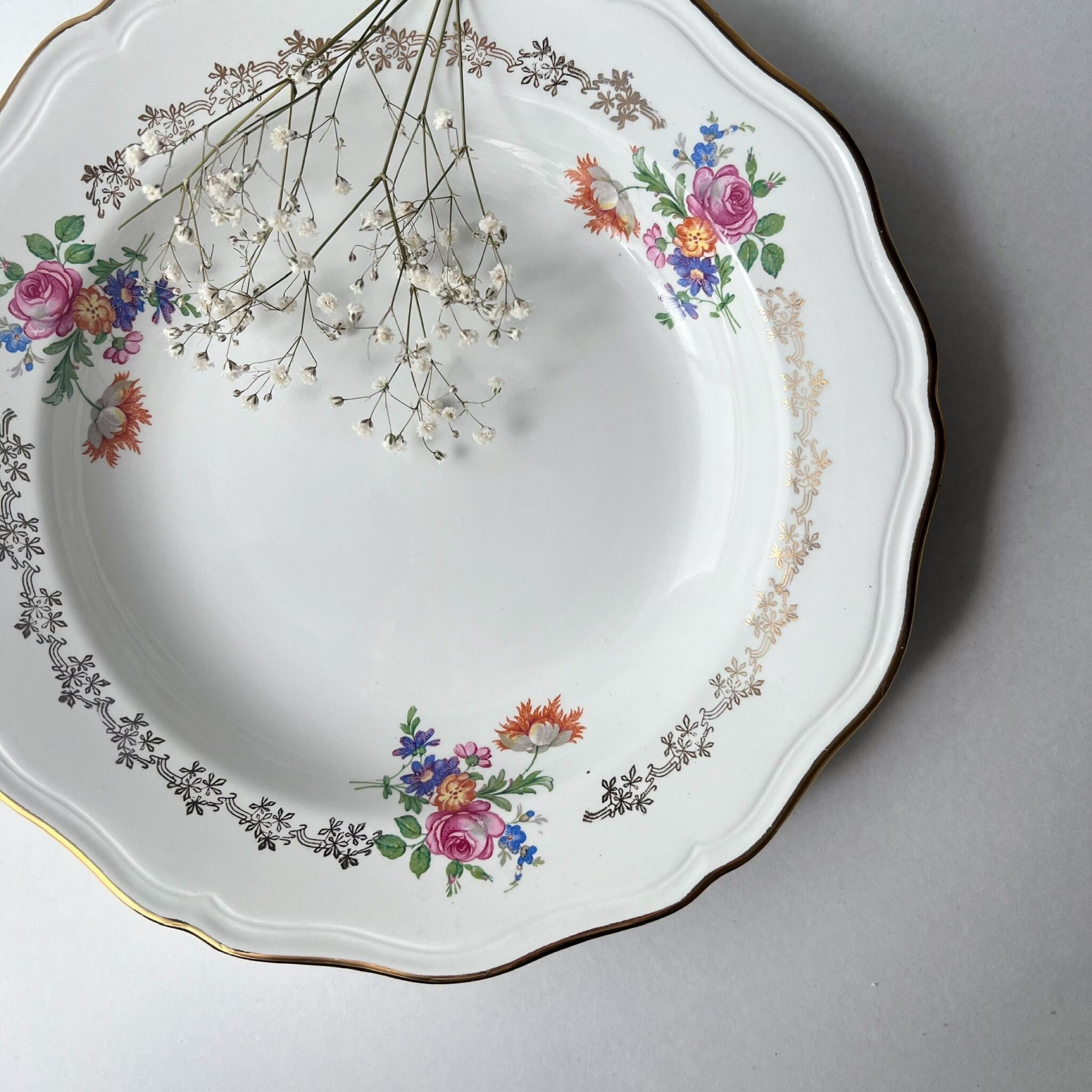 ホワイトカラーに繊細な花柄が可愛らしいスーププレート。