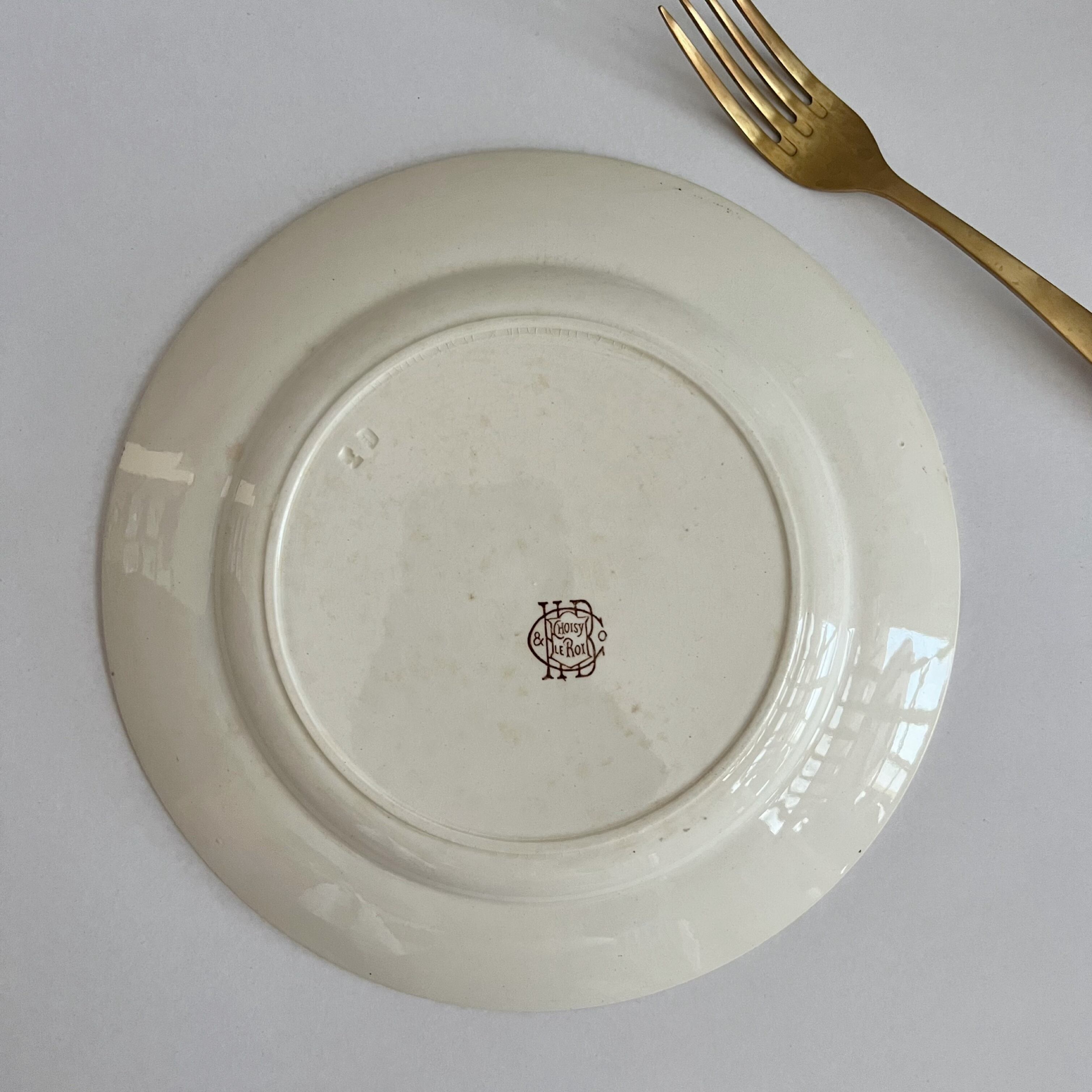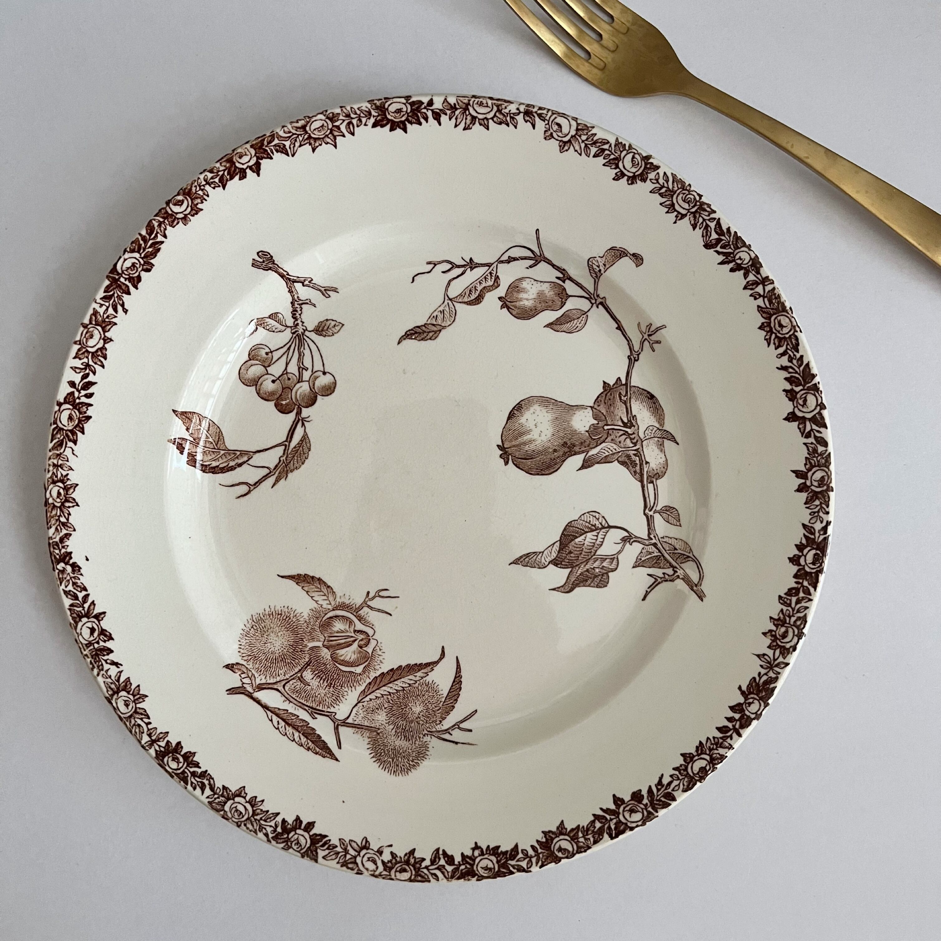 繊細なガーランドに枝付きの木の実や果物の絵柄が美しいアンティークプレート。